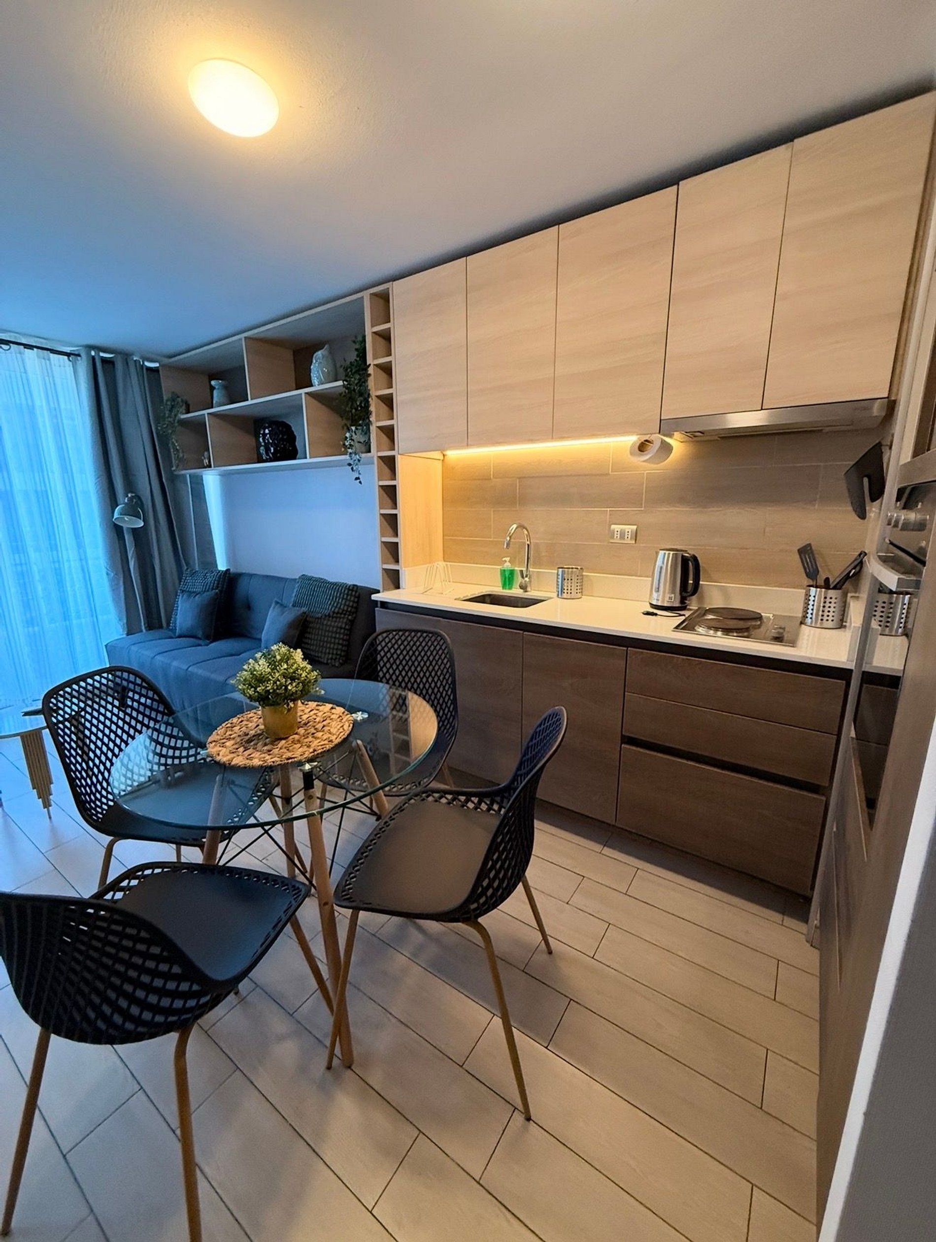 el departamento es idel para 3 adultos o 2 adultos en cama doble y dos niños en sofa cama
